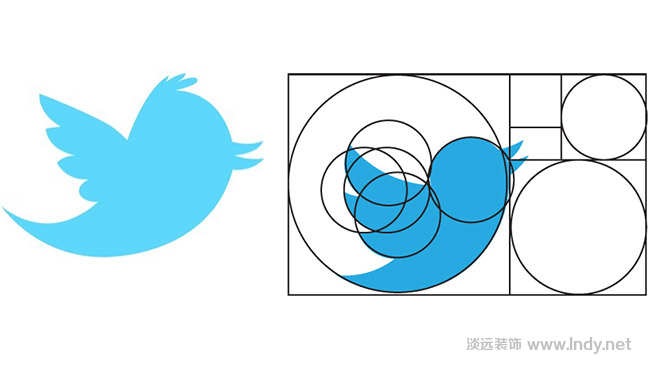 Twitter 的新LOGO就是借助一系列相互嵌套疊加的圓構建起來的,并且整體是符合1:1.618 的黃金比例。